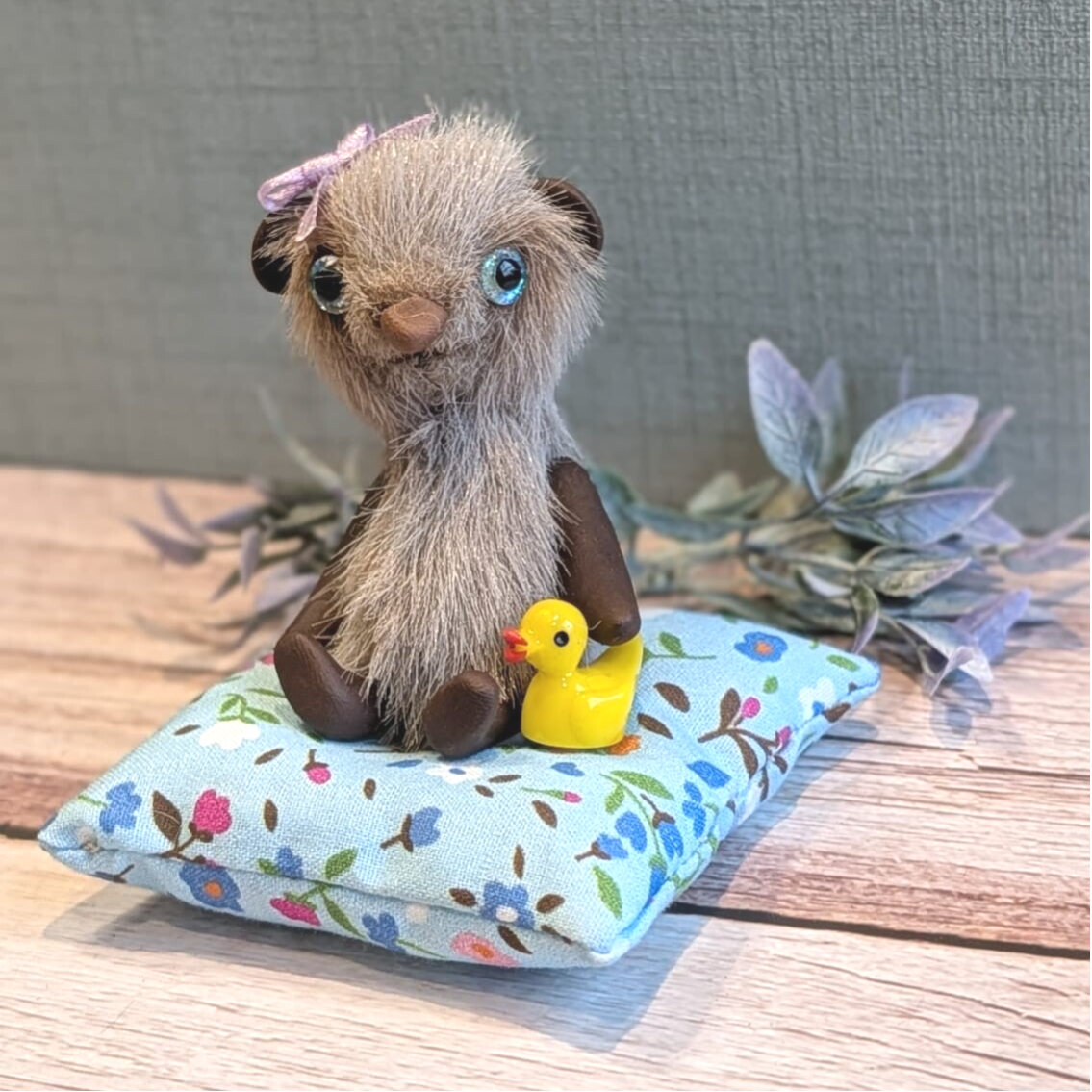 Snoet heeft haar eendje altijd bij zich en ze brengt ook haar kussentje mee om op te zitten.
