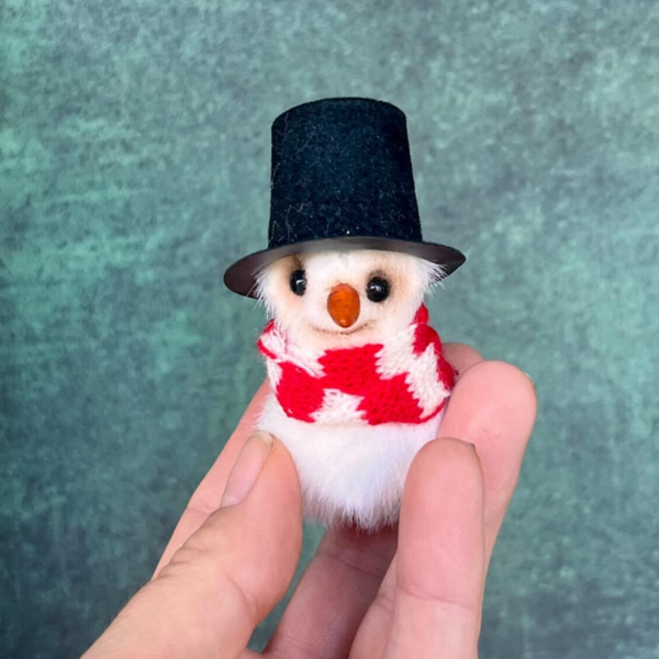 Maak kennis met Olly, een klein lief sneeuwmannetje van slechts 7 cm groot! Olly is met liefde en met de hand genaaid.