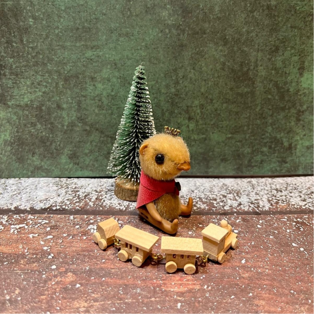 Max houdt van Kerstmis en brengt zijn mini kerstboompje en houten treintje mee.