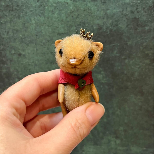 Maak kennis met Max, een klein lief beestje van slechts 7 cm groot! Max is met liefde en met de hand genaaid. Hij draagt een rode cape en een metalen kroontje.